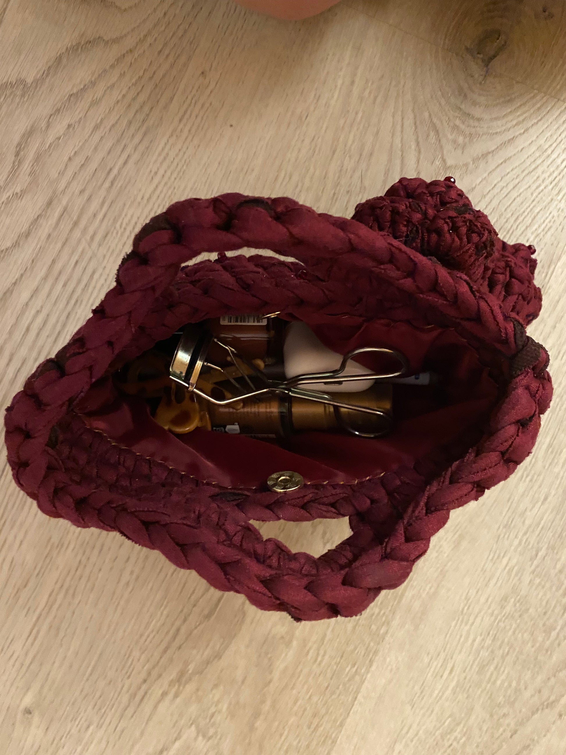 „true love“ is crocheted, embroided and lined by hand. The inner lining enables you to clean up your inner bag with just a wipe.
